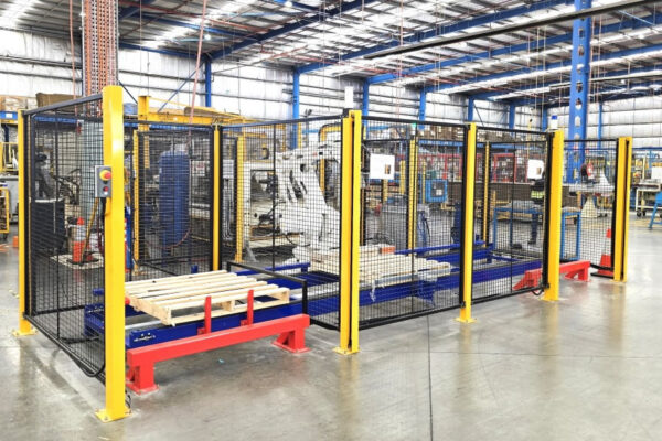 The system is fully guarded with perimeter fencing, interlocked doors and light curtains. Redundant safety circuits and monitoring devices are implemented in compliance with relevant Australian Standards, including: